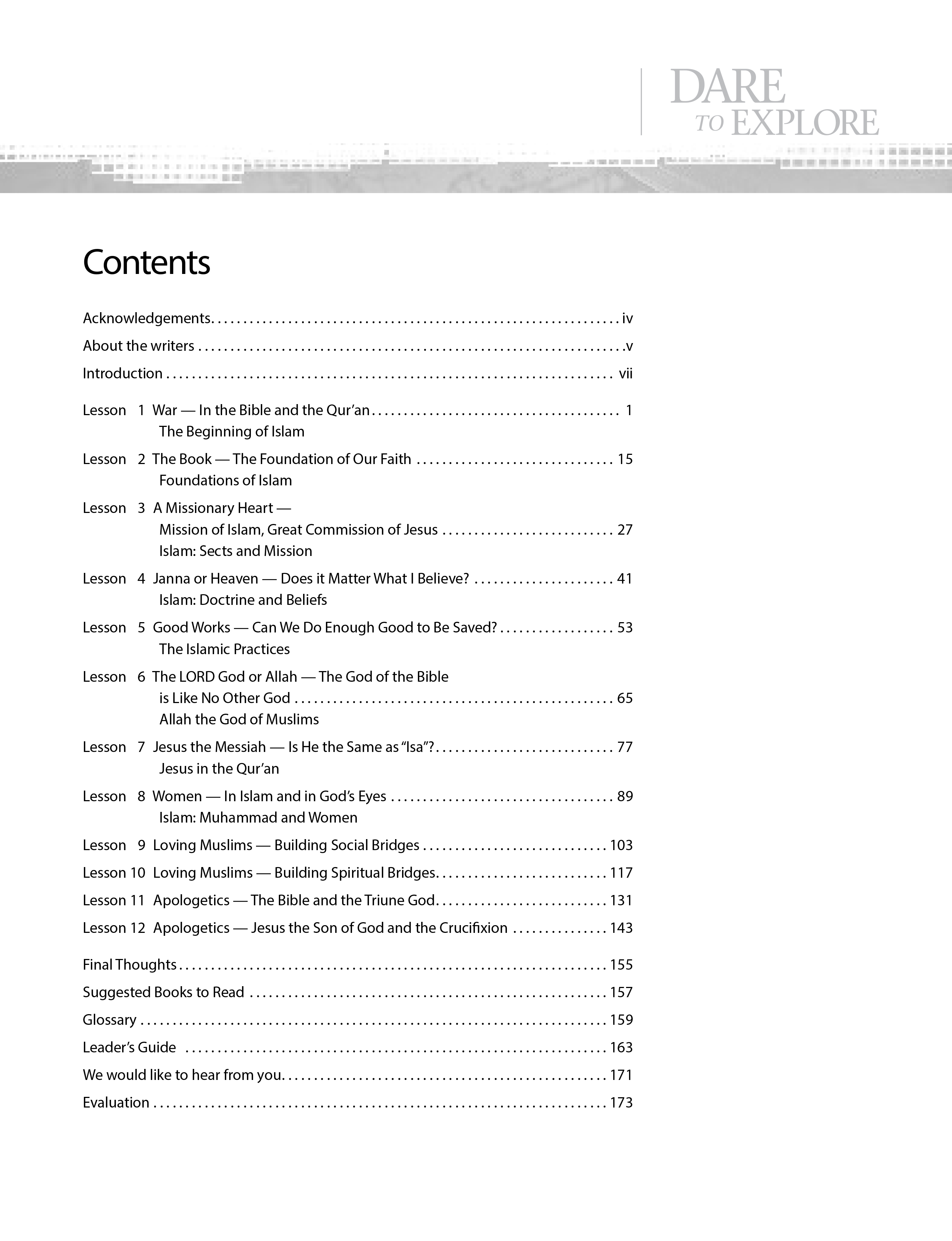 “It helped me when the Dare to Explore book contrasted Christianity with Islam. Although I learned a great deal about Islam, it also helped clarify my Christian doctrine/beliefs.”